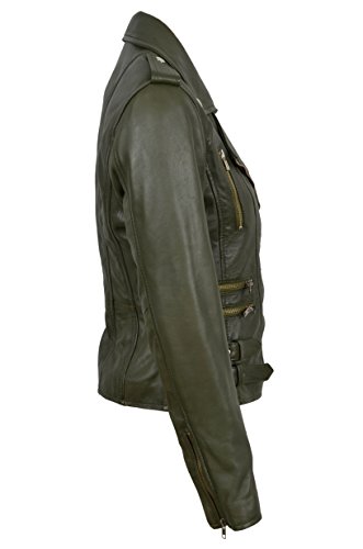Smart Range - Mistico lavato Vintage Rockstar Moto Designer Pelle Giacca - Donna verde 40
