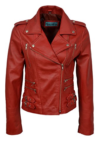 Smart Range - Mistico lavato Vintage Rockstar Moto Designer Pelle Giacca - Donna rosso 44