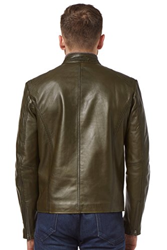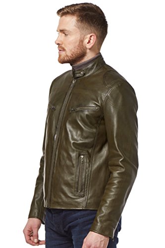 Smart Range SPEED Uomo in vera pelle OLIVE GREEN Jacket lavato Biker Motorcycle Style SR-02 (M)