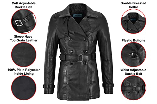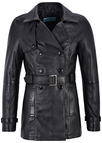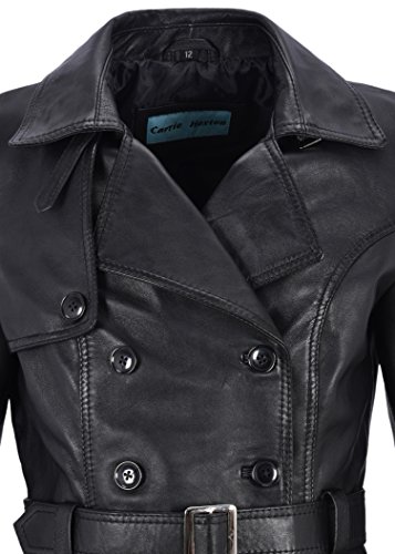 Smart Range, trench/cappotto da donna 1123 nero classico, media lunghezza, in vera pelle Black 8