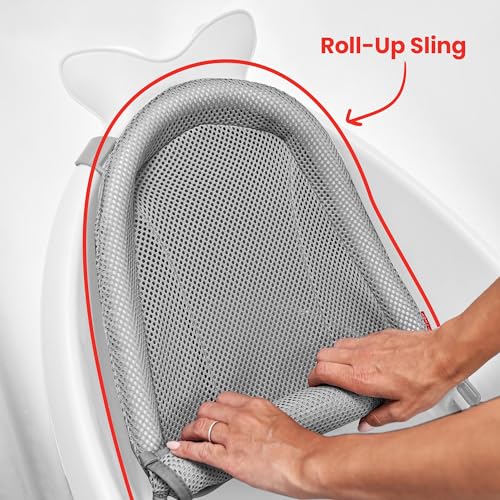 Skip Hop Moby Smart Sling - Vasca da bagno a 3 fasi, senza PVC, senza ftalati, antiscivolo, per neonati con tappo di scarico (dalla nascita a 11 kg, bianco)