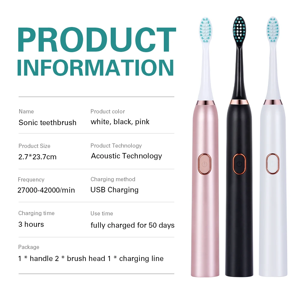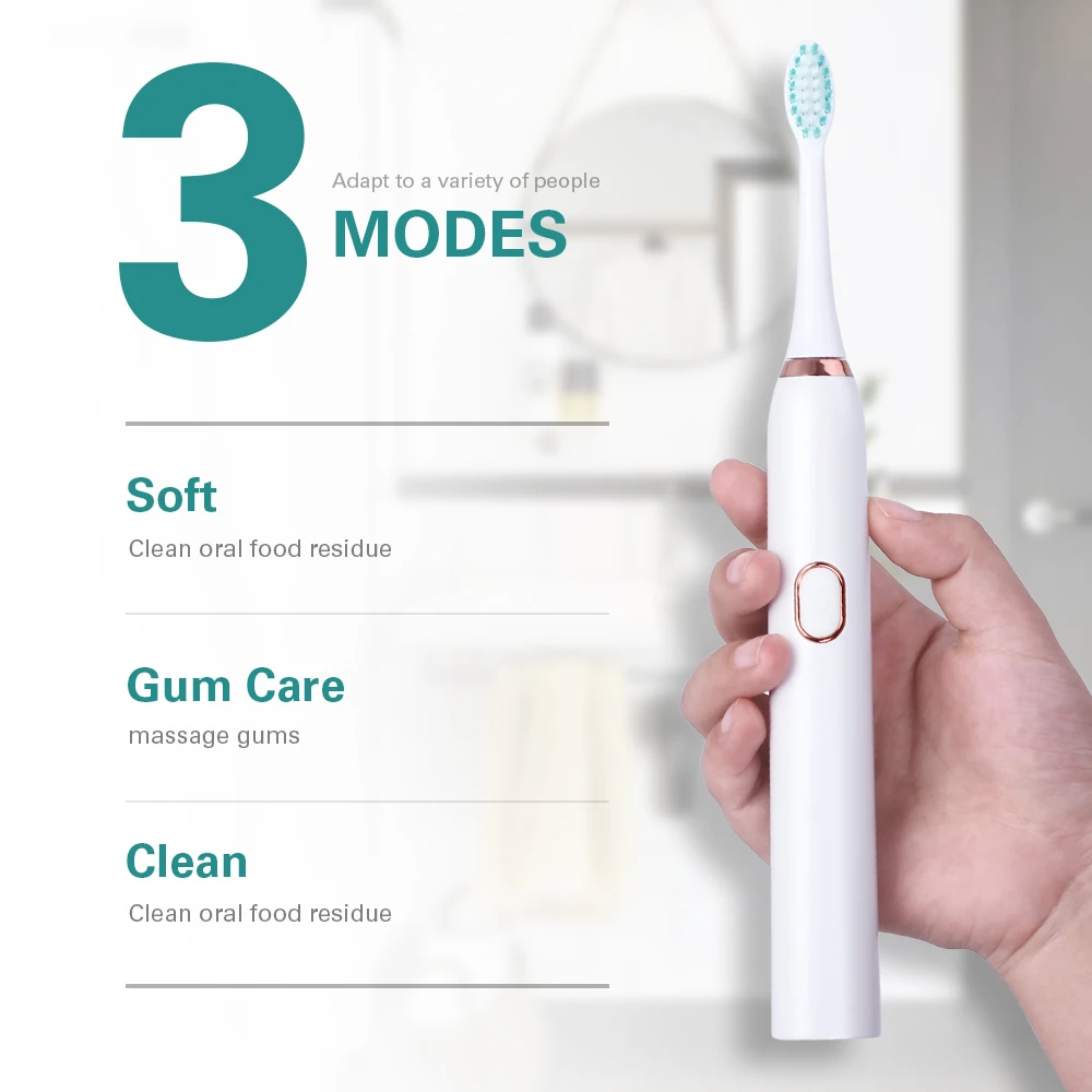 2019 Smart Sonic Electric Toothbrush USB Rechargeable 3 Mode Timer Teeth Tooth Brushes With 2Pcs DuPont Replacement Brush Heads