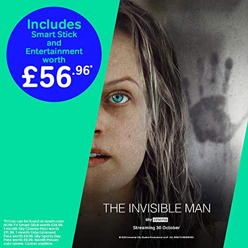 NOW TV - Smart Stick con 1 mese Entertainment Pass e 1 mese Sky Cinema Pass e Sky Sports Day pass, lettore multimediale in streaming HD, per guardare Disney+, YouTube, Netflix, BBC iPlayer, ecc.