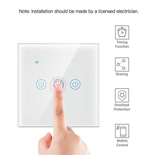 Smart Switch, WiFi 1/2/3/4 Gang Light Switch, Smart Light Switch, compatibile con Alexa e Google Home, telecomando APP, funzione di temporizzazione, nessun neutro richiesto