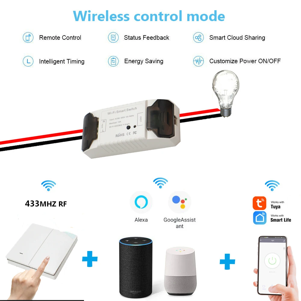 WiFi RF DIY Wifi Smart Switch Tuya Smart Breaker Wireless Switch Controller Light RF 433Mhz Wall DIY Relay Timer
