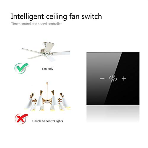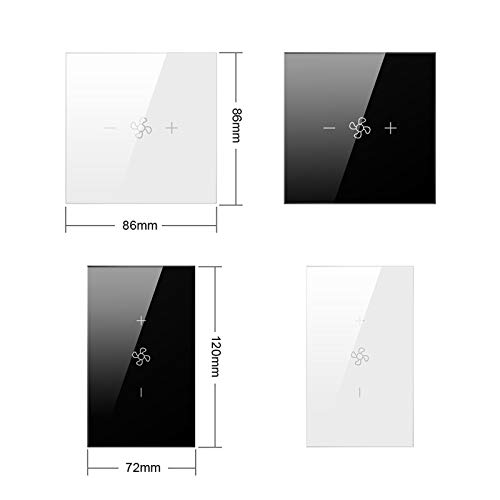CONTROLLO VOCALE E CONTROLLO TATTILE - Smart Wi-Fi Fan Switch Compatibile con Alexa, Assistente Google per il controllo vocale.Non è necessario trovare un pannello a sfioramento quando le tue mani tengono qualcosa o sono impegnate a cucinare.Design touch screen in vetro temperato, tocco da 100 ms tasso di risposta.