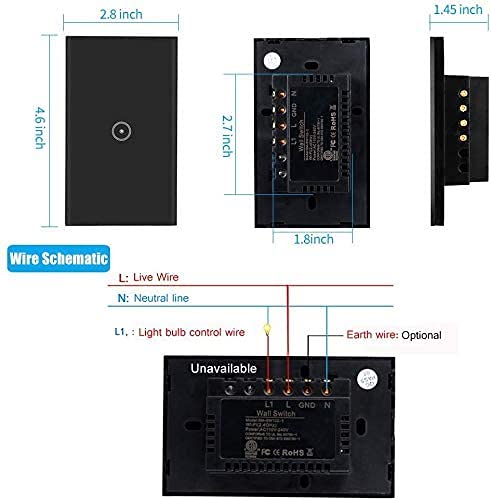 ✤Voice Control: The Smart Light Switch is compatible with Amazon Alexa, Echo Dot and Google Assistant. Use the voice command to turn the light on/off. Save on the effort of opening buttons, especially when your hands are full