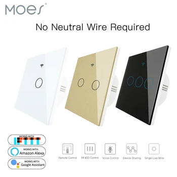 Smart switch no neutral Switch Interruptor WiFi RF433 Smart touch Switch Tuya Remote Control Single Fire Work with Alexa
