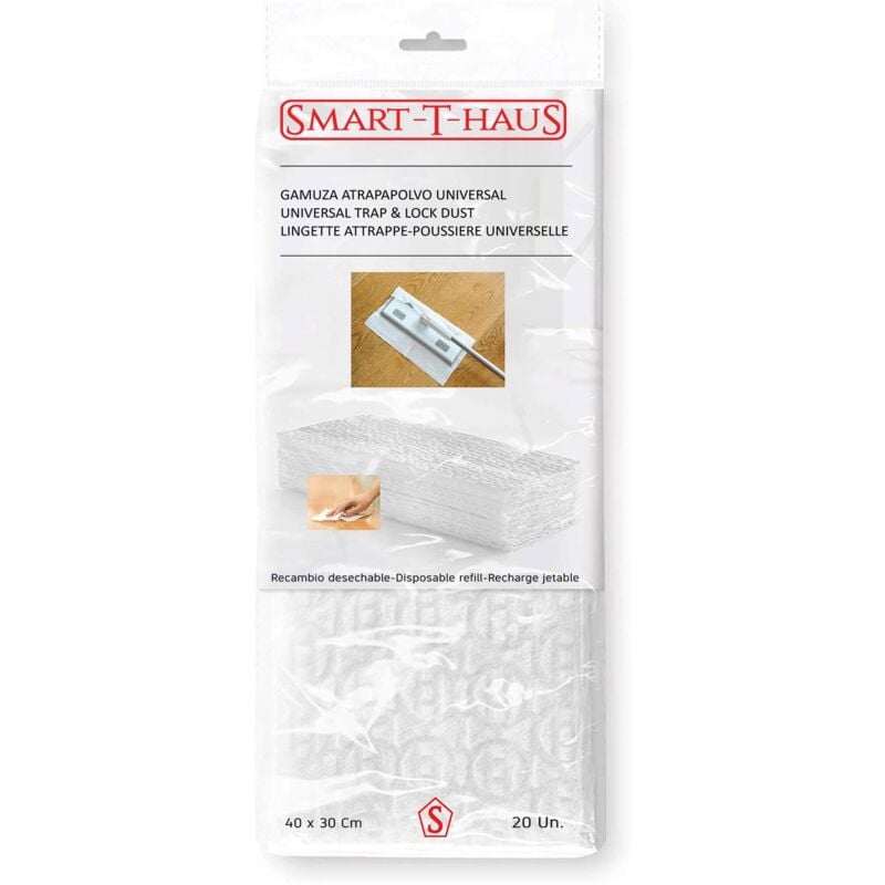 Descrizione Confezione da 20 panni universali di qualità per mocio con bastone cattura polvere o per uso a mano. Per mocio cattura polvere grandi e piccole. Attira e cattura la polvere senza sollevarla. Multiuso: è indicata per qualsiasi utilizzo: pavimenti, soffitti, piani di lavoro, pareti e tutte le superfici (legno, vetro, ceramica, parquet, mobili, divani, ecc.). Utilizzare i panni su entrambi i lati e al termine della pulizia, gettarli nella spazzatura. Scopa elettrostatica cattura polvere di qualità premium. I ricambi asciutti catturano e trattengono fino a 3 volte più sporco, polvere e peli rispetto a una scopa tradizionale. Sono particolarmente raccomandati per chi ha animali domestici in casa e per chi soffre di allergie alla polvere. Inoltre catturano liquidi e asciugano la superficie. Possono essere utilizzati con prodotti per la pulizia di pavimenti o mobili. Ioni positivi che intrappolano lo sporco grazie all'effetto elettrostatico. polvere, peli, sporco, peli di