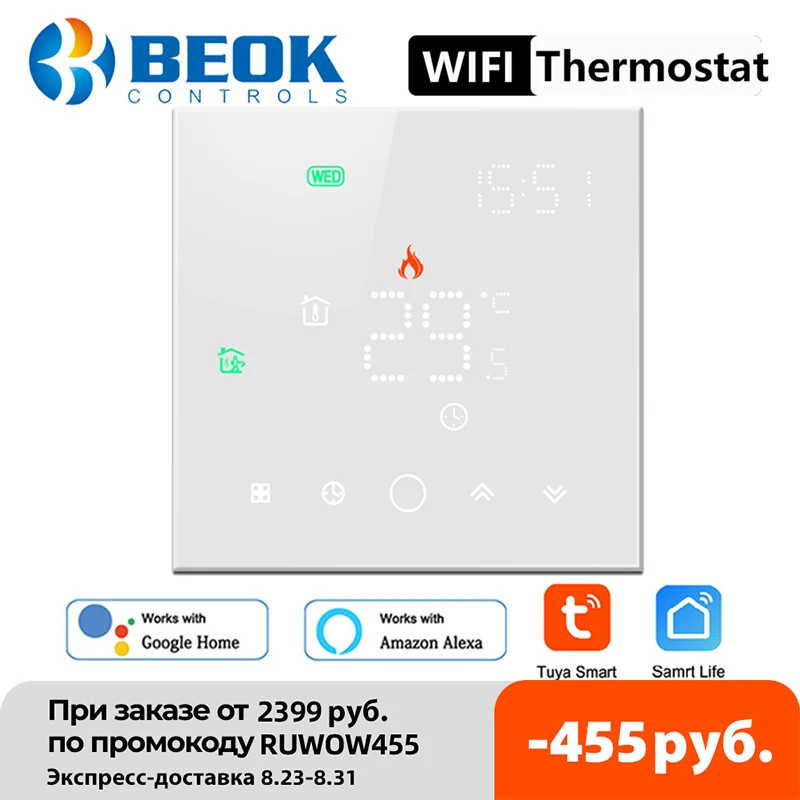 Beok Tuya Smart Life Wifi Thermostat for Electric/Water Floor Heating Home Temperature Controller Work with Alexa Google Home
