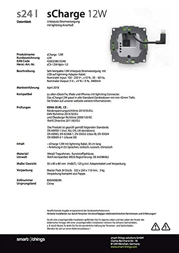 Smart Things S24 L sCharge - Alimentatore da incasso 12 W appositamente per sDock Fix incluso adattatore Lightning 30 cm per la ricarica del iPad | 5 V - , 5%/-5%, 2400 ma