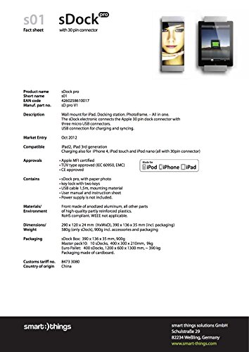 Smart things solutions - Supporto per parete/cornice/base di ricarica sDock Pro per Apple iPad 2/3