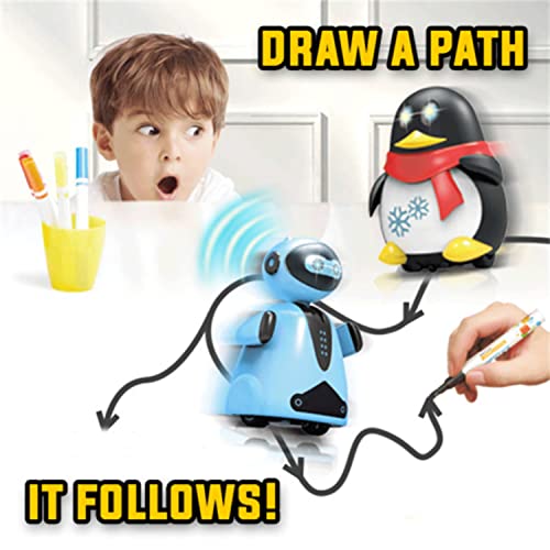 Smart Pen Tracing Robot, Mini Magic Pen Robot giocattolo induttivo, Giocattolo induttivo Drawbot per bambini Segui la linea nera, Giocattoli educativi per bambini Ottimo regalo per bambini (blu)