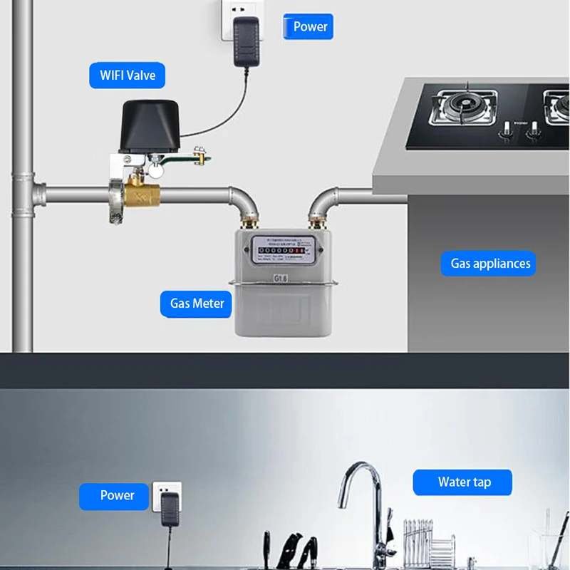 Tuya Smart Wireless Control Gas Water Valve WiFi Shut Off Controller Work with Smart Life App and Alexa Google Assistant
