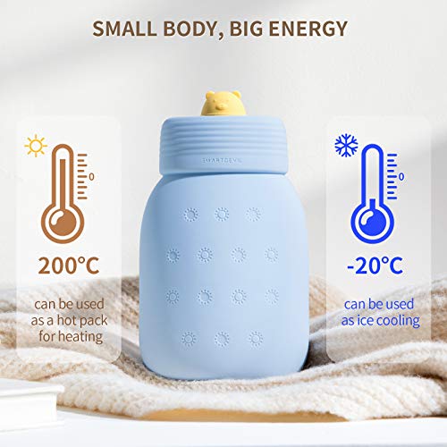 SmartDevil Borsa dell'acqua calda, mini borsa dell'acqua calda per microonde con fodera in maglia con motivo a orsetto, borracce premium per acqua calda adatte a uomini, donne e bambini-Blu