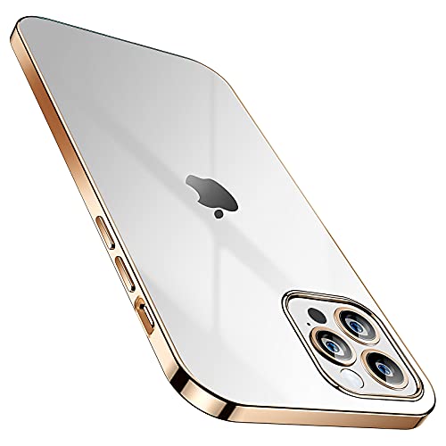 SmartDevil Cover per iPhone 12 / iPhone 12 PRO Trasparente con Gratuito Pellicola Vetro Temperato, Custodia Silicone Morbido Protettivo TPU Gel Cover per iPhone 12 6.1 Pollici-Oro