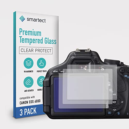 Smartect Pellicola Protettiva [3 PEZZI - CLEAR] per Canon EOS 600D / 60D / Rebel T3i - Vetro Temperato 9H - Proteggi Schermo Anti-Bolle - Anti-Impronte