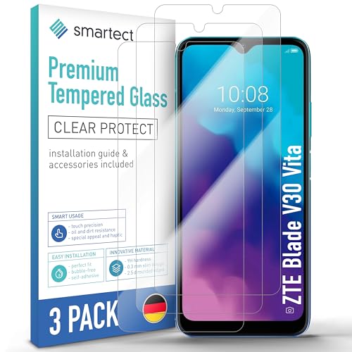 Smartect Vetro Temperato [3 Pezzi, Clear] per ZTE Blade V30 Vita, Pellicola Protettiva HD Anti Graffio, Senza Bolle, Durezza 9H, 0.3mm Ultra Trasparente, Ultra Resistente