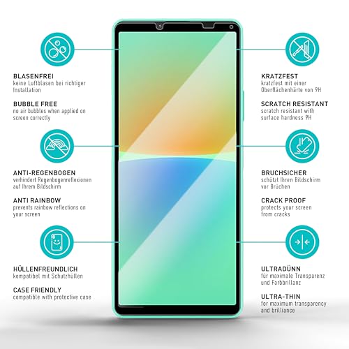 ADATTAMENTO PERFETTO: La copertura completa è compatibile al 100% con Sony Xperia 10 IV. Se hai uno smartphone con schermo curvo solo la superficie orizzontale è coperta dalla pellicola temperata