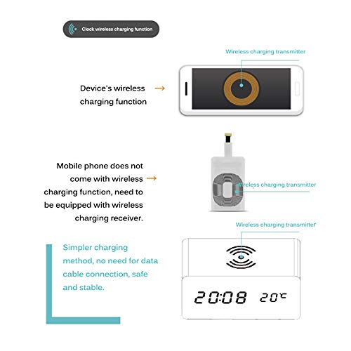 3- Ricarica wireless: basta posizionare il telefono in cima allorologio per iniziare a caricare automaticamente. La ricarica avviene solo quando è alimentata da un cavo USB, non è caricabile quando è alimentata da batterie. E anche con una shell del telefono può caricare a una distanza di 8 mm, compatibile con tutti gli smartphone che supportano la ricarica wireless.