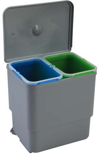 Smartix Kit Portarifiuti da Anta ad Apertura Automatica Adatto alla Raccolta Differenziata (Secchi Inclusi), Grigio, 23.7 x 31.2 x 34 cm