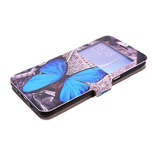 SMARTLEGEND Cassa del Raccoglitore per Samsung Galaxy J7 (2016), Open Window Case Aprire la finestra custodia PU Cuoio Copertura, Protettiva Portafoglio Libro Cover con la funzione di stand con Bella pattern per Ragazze e Donne - Farfalla Blu