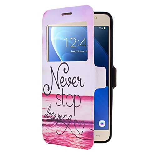 SMARTLEGEND Cassa del Raccoglitore per Samsung Galaxy J5 (2016), Open Window Case Aprire la finestra custodia PU Cuoio Copertura, Protettiva Portafoglio Libro Cover con Chiusura Magnetica con la funzione di stand per la Carte - Non Smettere mai di Sognare