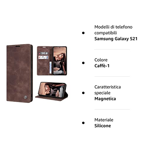 SmartLegend Cover per Samsung Galaxy S21 Pelle Premium Custodia per Samsung Galaxy S21 Portafoglio Magnetica Flip con Silicone Bumper Cover Libro per Samsung Galaxy S21 4G/5G (6.2'') - Caffè
