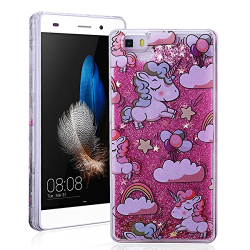 SMARTLEGEND Glitter Rigida Custodia per Huawei P8 Lite, Liquido Sabbie Mobili Stella Bling Cover Bumper PC Duro Back Case Design di Cute Unicorno Modello Caso, Protettiva Antiurto Durable Copertina - Rosa