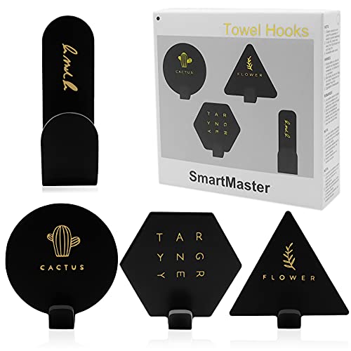 SmartMaster Ganci Adesivi, Appendi Accappatoio Bagno, Appendi Asciugamani Bagno, Impermeabile e Antiruggine Ganci Adesivi Bagno,Gancio Adesivo per Cucina e Bagno,Ganci portasciugamani-4 pezzi
