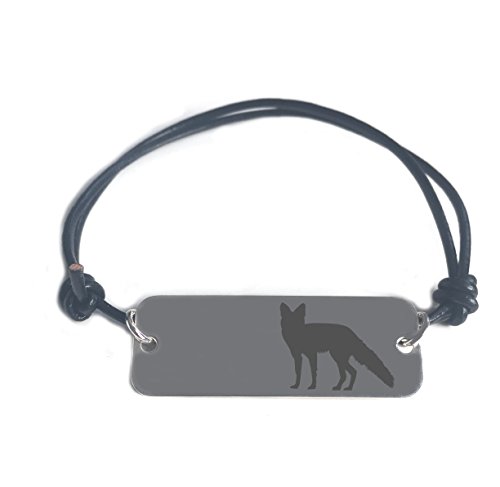 Smartness bracciale- Fox symbol- inciso in argento Sterling ciondolo su cordoncino di cuoio