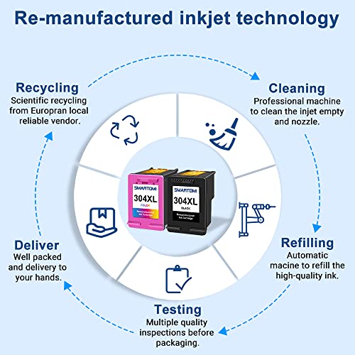 SMARTOMI 304XL Rigenerato Cartucce d'inchiostro Sostituzione per HP 304 XL per Deskjet 3750 3760 3762 2630 2620 2622 2632 2634 3720 3730 3733 3735 per Envy 5030 5010 5020 5032(1 Nero 1 Tri-colore)