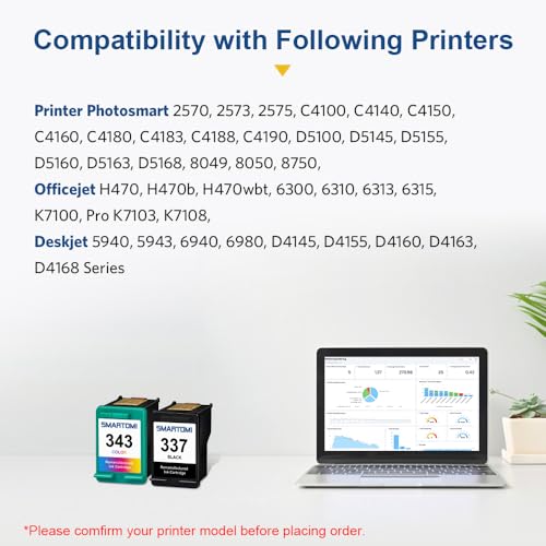 SMARTOMI Remanufactured 337 343 Compatibili per 337 343 XL per Photosmart 2570 2573 2575 C4140 C4150 C4180 8049 8050 8750 Officejet 6300 6310 6313 6315 Deskjet 5940 5943 6940 6980 D4155 D4160