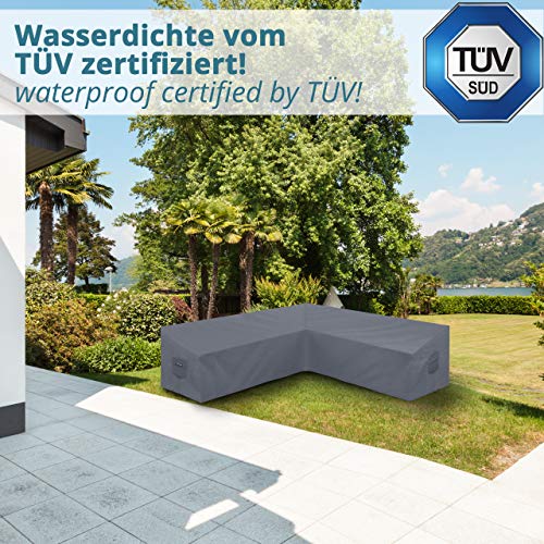 ✅ CERTIFICATO TÜV - IMPERMEABILITÀ AFFIDABILE: Copertura in PVC e cuciture ermetiche proteggono il copri divano da esterno l da pioggia, neve raggi UV e in particolare dal vento grazie alla corda aggiunta