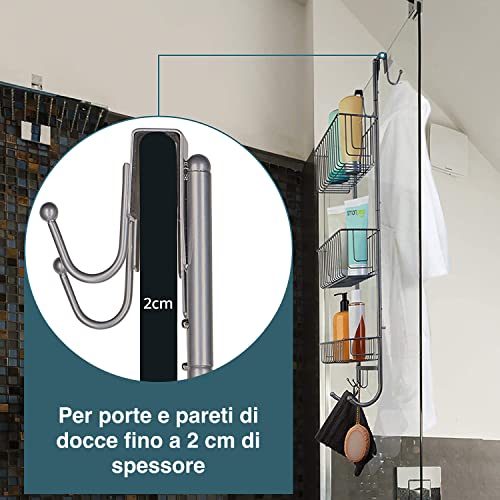 ✅ 3x CESTINI PENDENTI + 8x GANCI: Tre cestini da doccia appesi con traverse aderenti e 6 ganci all'interno + 2 ganci per asciugamani all'esterno: ci sta tutto il necessario per la doccia.