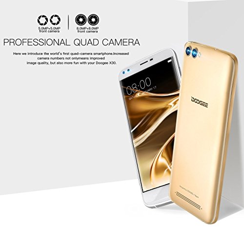Smartphone con 4 Fotocamere -DOOGEE X30- (Display 5.5" FHD Vetro 2.5D, 2GB RAM 16GB ROM, Android 7.0, MTK6580 Quad-Core, 3380 mAh), oro