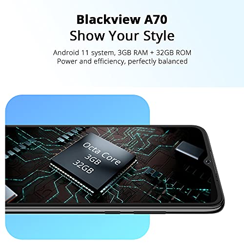 Smartphone Offerta, Blackview A70 Cellulare Android 11 Display 6.517" HD+, Batteria 5380mAh, 3GB+32GB (SD 256GB), Octa-Core, Tripla Fotocamera 13MP+5MP, Dual Sim Telefoni Cellulari/Face ID/GPS-Nero