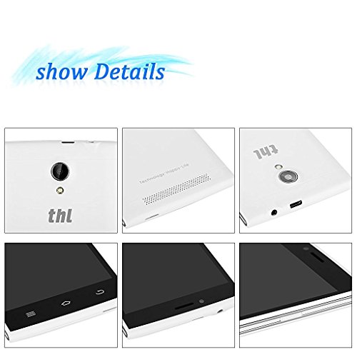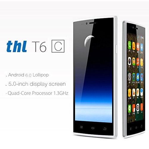 THL T6C Smartphone, 5.0 Pollici HD IPS Display Android 6.0 3G Telefono Cellulare, MT6580 Quad Cores 1.3GHz, 1GB RAM + 8GB ROM, 8.0MP+2.0MP Camera, Dual Sim WiFi Hotkont GPS Bluetooth Cellulare - Bianco