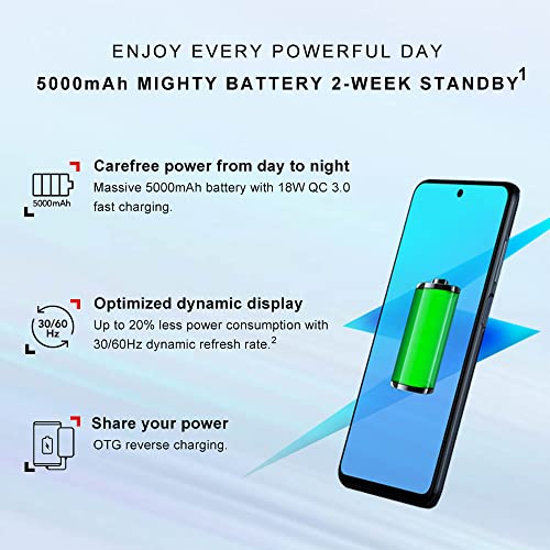 BATTERIA DA 5000 mAh, STANDBY DI 2 SETTIMANE E RICARICA INVERSA OTG, ricarica rapida QC 3.0 da 8 W. Display dinamico ottimizzato. Fino al 20% in meno di consumo energetico con una frequenza di aggiornamento dinamica di 30/60 Hz