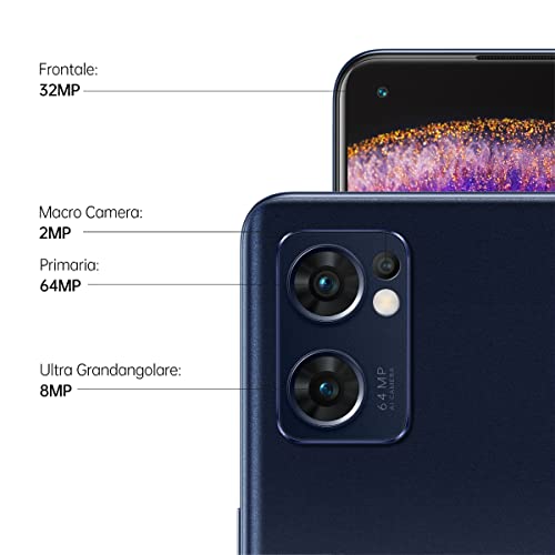 OPPO Find X5 Lite Smartphone, AI Tripla fotocamera 64+8+2MP, Display 6.43” Refresh rate 90HZ AMOLED FHD+, 4500mAh RAM 8GB+ROM 256GB Android 12 [Versione Italiana] Starry Black