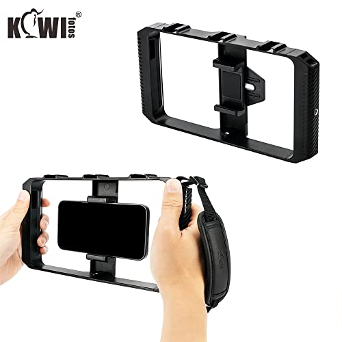 Smartphone Video Rig con Impugnatura a Mano Stabilizzatore Gabbia per Videomaker Vlog Compatibile con iPhone 13 12 11 XS X XR 8+ 8 7+ 7 6S+ 6S Galaxy Mate MI Google Pixel ecc. con 55-90mm di Larghezza