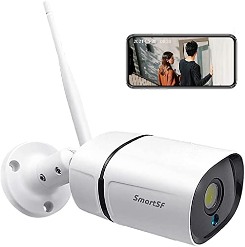 SmartSF Telecamera WiFi Esterno, Telecamera di sorveglianza, audio bidirezionale, visione notturna di 65 piedi, accesso remoto, impermeabile IP66, registrare 24/7, adatto a Kit Videosorveglianza WiFi