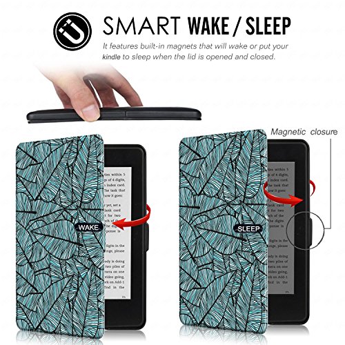 DHZ SmartShell custodia per Kindle Paperwhite - la flip cover con funzione Sleep/Wake per Amazon Kindle Paperwhite (adatto tutte le versioni 2012, 2013, 2015 ,2016), B1-Olive Green Leaves Kindle Paperwhite