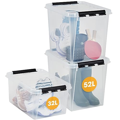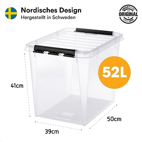 SmartStore Contenitori di plastica rinforzata e trasparenti con coperchio, confezione da 2 scatole da 52L e 1 da 32L, adatte per alimenti, impilabili, senza BPA, garanzia di 10 anni, 50 x 39 x 41 cm
