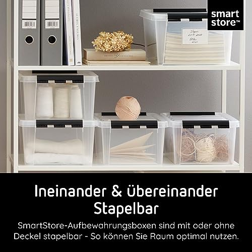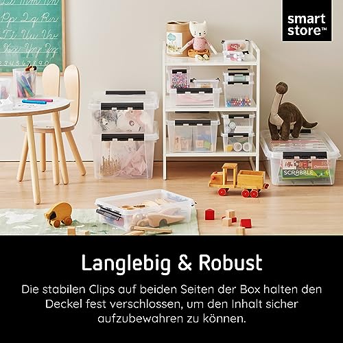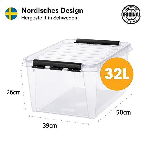 Scatole in plastica di alta qualità da 32 e 52 l: le scatole di plastica SmartStore con coperchio sono perfette per mantenere la casa e l'ufficio organizzati, qualsiasi cosa, da giocattoli, libri, vestiti e documenti. Soprattutto le scatole SmartStore sono approvate per conservare in modo sicuro anche i prodotti alimentari. Dimensioni 32 L: esterno: 50 x 39 x 26 cm. Interno: 40 x 30,5 x 22 cm. Dimensioni 52 L: esterno: 50 x 39 x 41 cm. Interno: 38,5 x 29,3 x 37,2 cm.
