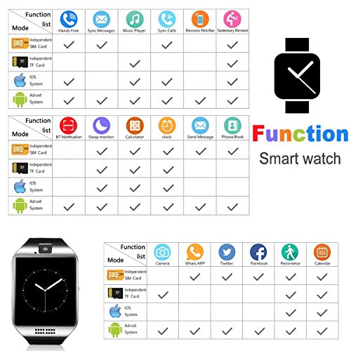 ☛【Intelligente e Multifunzione】:Smartwatch Sincronizzare le chiamate tramite SIM Card o Bluetooth, Pedometro, Mente sedentaria, Telecamera remota, Sonno Monitor, Lettore musicale, Notificatore remoto, Invia messaggio, Registratore vocale, Calcolo calorie, Calcolo calorie, Sveglia, Interfaccia utente multilingue, Anti perso ricordo, muti- fuso orario, ora legale e notifica dei messaggi inclusi facebook, twitter, email, chiamate, SMS e così via.