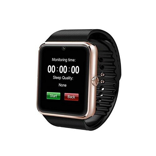 SmartWatch GT08 - Smartwatch Bluetooth con slot per scheda SIM per Android, Samsung, HTC, LG, Sony, Huawei (funzioni complete) IOS iPhone 5/5s/6/plus (funzioni limitate) (oro+cinturino nero)