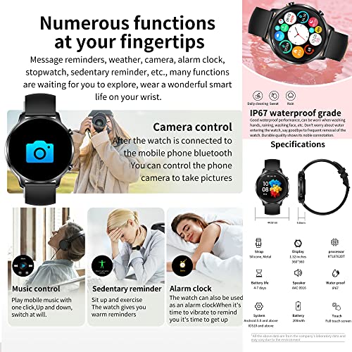 【1,32 pollici touch screen completo】 SGDDFIT smartwatch uomo adotta un grande schermo a colori ad alta definizione TFT da 1,32 pollici, alta risoluzione 360 * 360. la tecnologia touch screen completa rende il tuo funzionamento facile e veloce. con 5 livelli di luminosità, è anche possibile regolare la luminosità per vedere chiaramente il display. ci sono multiplo tra cui scegliere, puoi anche personalizzare il quadrante per mostrare la tua personalità.