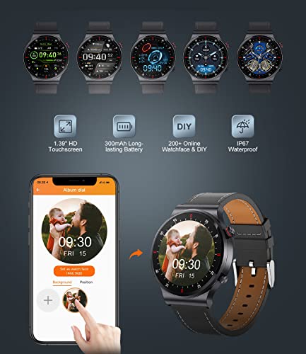 Smartwatch Uomo Chiamate e Assistente Vocale, 1.39" Orologio Uomo con Cardiofrequenzimetro Monitor del SpO2 Sonno Notifiche Messaggi,IP67 Impermeabile Smart Watch con 100+ Modalità Sportive,Nero Cuoio