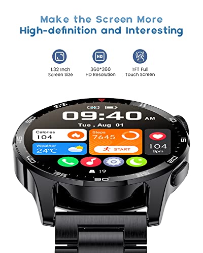 【Schermo touchscreen da 1,39 pollici e chiamate Bluetooth】 Questa smartwatch militare uomo vanta un ampio schermo touchscreen ad alta risoluzione da 1,39 pollici che regala un'esperienza visiva unica. Inoltre, supporta le chiamate Bluetooth. Dopo averlo connesso al tuo telefono, potrai gestire chiamate direttamente dall'orologio, leggere messaggi, organizzare i contatti e persino consultare i registri delle chiamate.